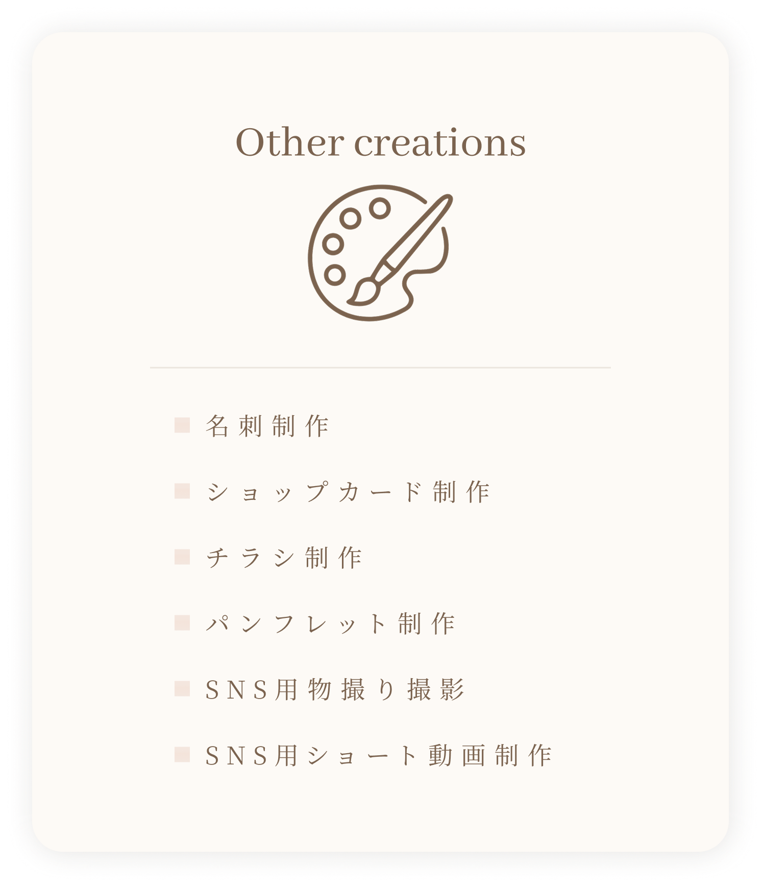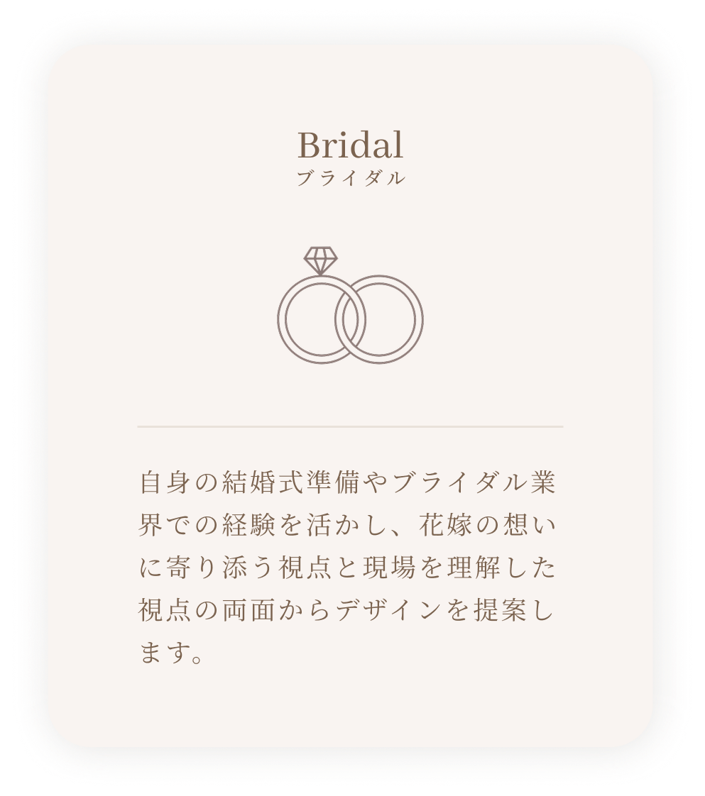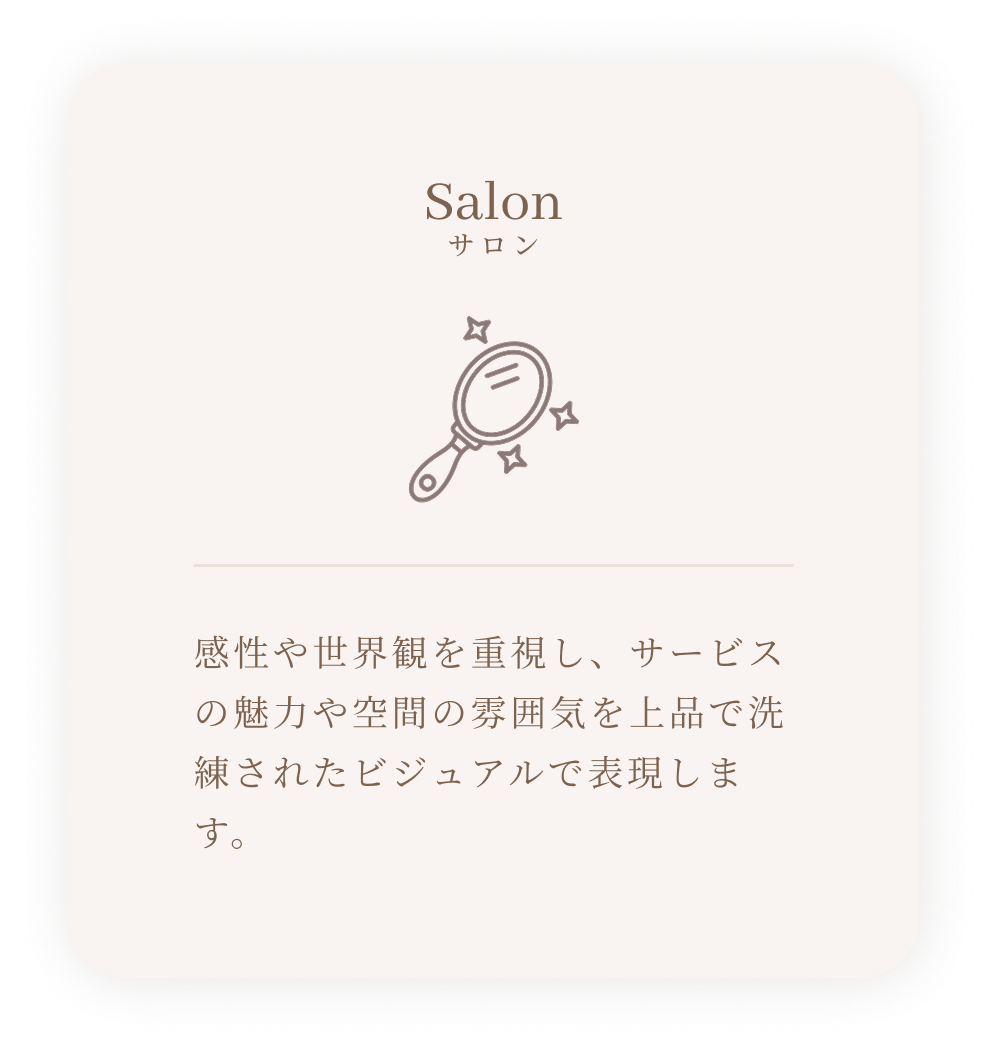 美容・ブランド・小規模事業者さまを中心に、やさしく、上品で信頼感のあるデザインを得意としています。