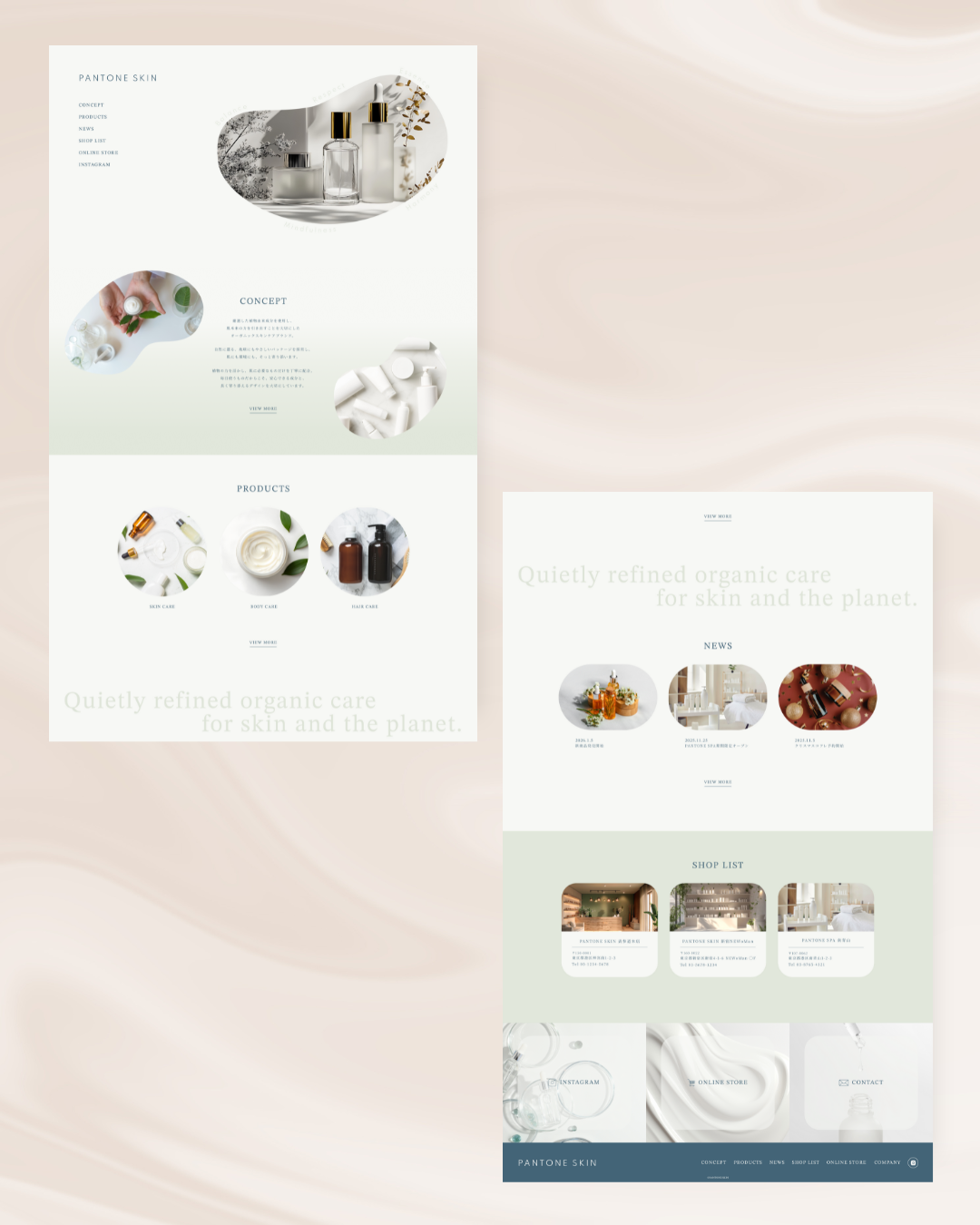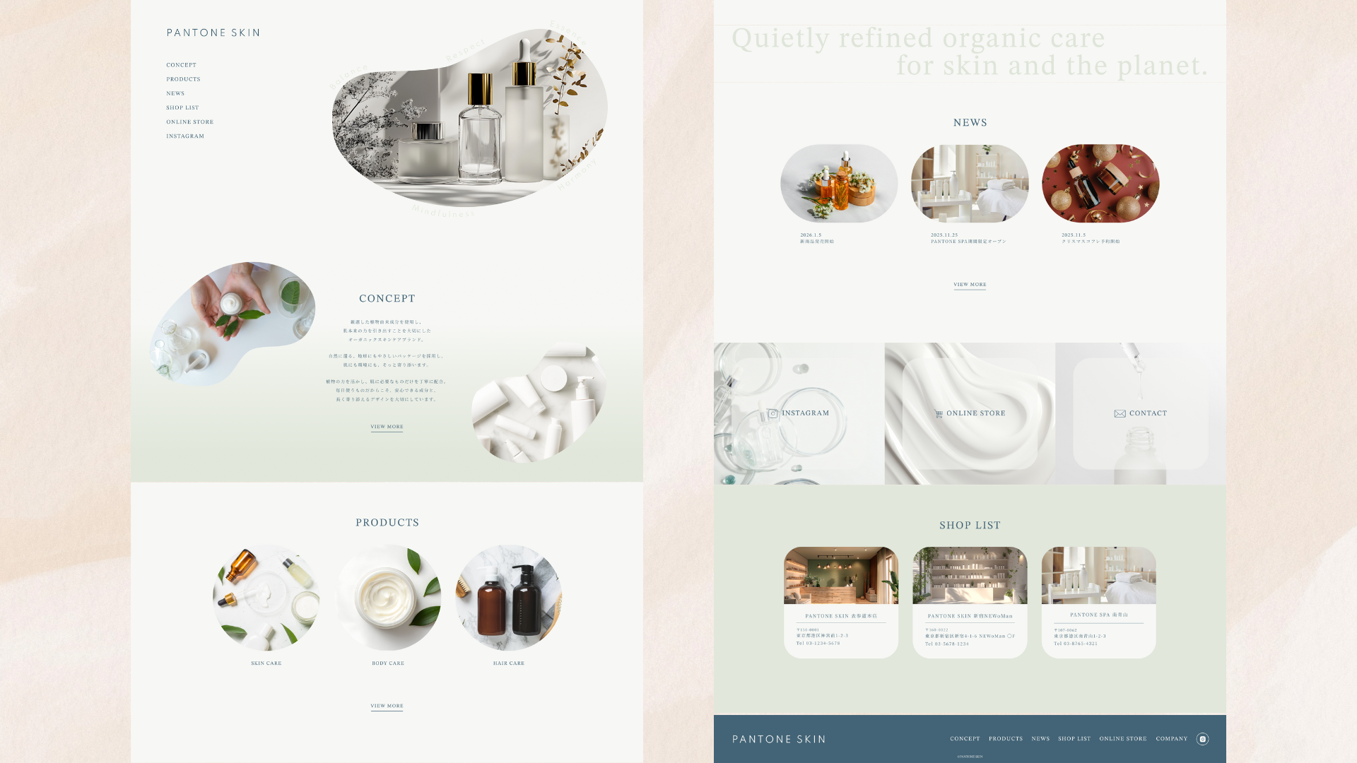 PANTONEが発表した2026年のトレンドカラー3色を基調に配色を設計。 トーン&マナーを揃え、余白を活かした構成とすることで、 オーガニックコスメらしいやさしさと洗練された印象を表現しました。
